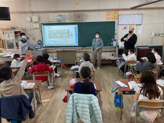 3年生がC-NETの先生と一緒に英語の学習をしました。英語でのヒントを聞き取って、答えるクイズ大会をしました。とても楽しく英語には触れることができました。