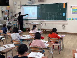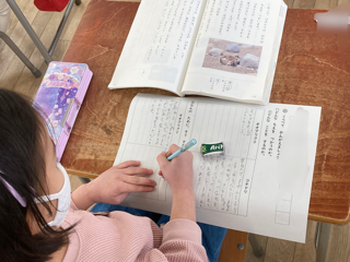 1年生が国語「子どもをまもるどうぶつたち」を学習しています。オオアリクイとコチドリをくらべて、どんなちえを使って子どもを守るのかを、ワークシートを使って学習しました。