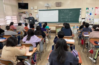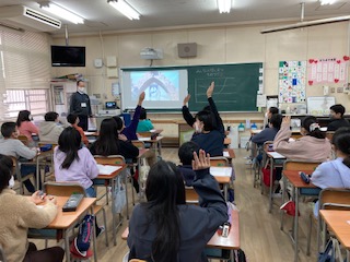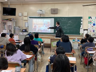 キャリア教育として、本校に研修に来ている方に、「みんなの役に立つものづくり」というテーマで6年生に講話をしていただきました。子どもたちは、熱心に聞いていました。