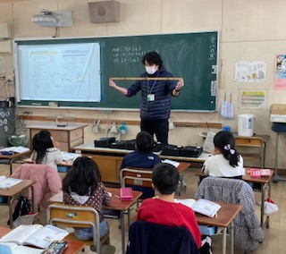 2年生の算数学習の様子です。学習のしあげ「長いものの長さのたんい」を学習しました。(上の写真)