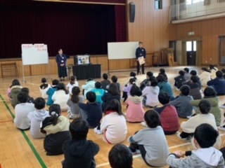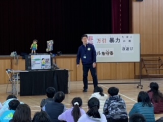 後半は、ペープサートを使った人形劇で万引きについてくわしくお話がありました。そして、万引きをしない為にはどうすれば良かったのかなどを話合いました。