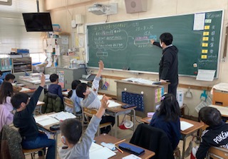 2年生が算数で、めあて「どんな計算になるか考えよう」を学習しました。文章題を読み、図に表して計算式を考えました。図から、全体÷部分=求める部分と理解できました。
