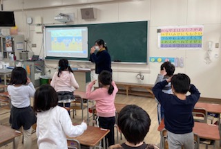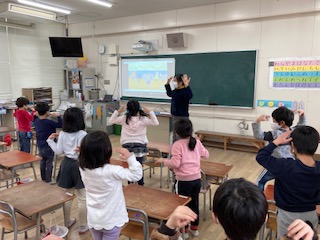 1年生がC-NETの先生と一緒に英語に触れる活動をしました。音楽に合わせて踊るなど楽しく英語に触れることができました。