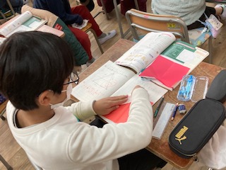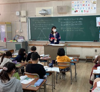 3年生が算数「三角形と角」の学習で、「二等辺三角形をもとにして正三角形の作図」をしました。授業の終わりには、折り紙で正三角形を作りました。