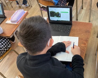 3年生が国語の学習で、「家のつくり」についてタブレット端末を使って調べました。調べたことをノートにまとめました。