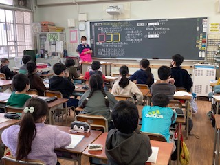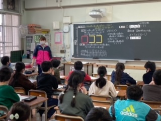 5年生が算数「変わり方を調べよう」の学習をしました。正方形の数と棒の数との関係を考えました。友だちの考えた式を説明できるように、一人ひとりが考えました。