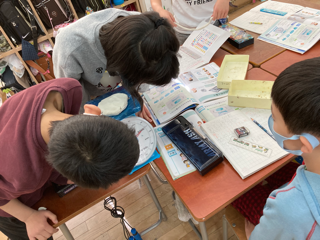 3年生が理科「ものと重さ」の学習をしています。形を変えた時に、重さは変わるのかを、実験をして調べました。ねんどを丸い形、平らな形、細長い形、細かく分けるにして、それぞれの重さを計りました。台ばかりの使い方や見方も学習しました。
