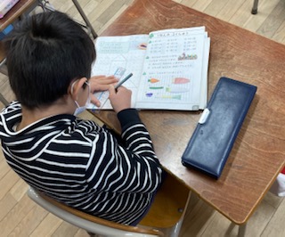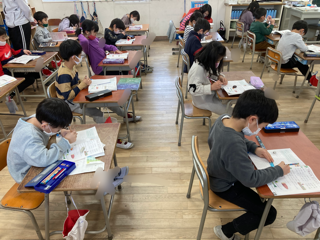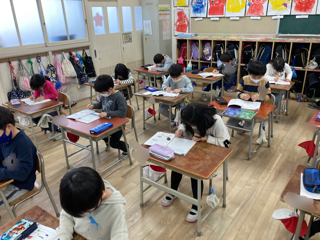 1年生が、算数で点と点を線でつないで、いろいろな形を書く学習をしました。