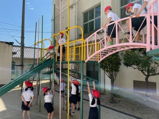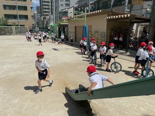 鉄棒や滑り台での安全な遊び方、一輪車や竹馬の片付け方など、運動場にある遊具の正しい使い方を学びました。