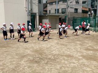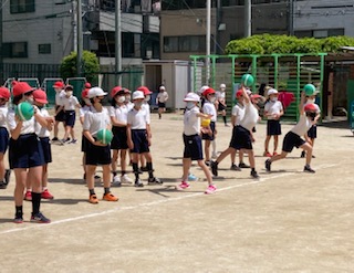 4年生が学年で体育をしました。大縄跳び、ボール投げ、色々な姿勢からのダッシュなどをしました。