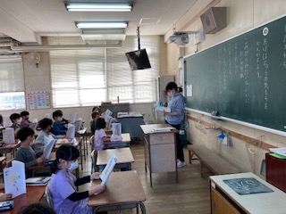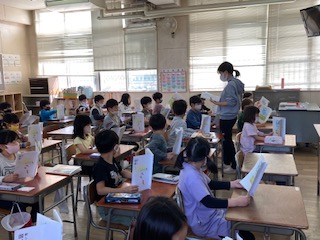 2年生が、「風のゆうびんやさん」の学習で、あげはちょうの気持ちを考えて、音読をしました。「わくわく」「うきうき」した気持ちを表現できるように、音読を工夫していました。