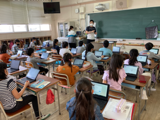 4年生が双方向通信ソフト「Teams」の使い方を練習しました。緊急事態宣言期間に「Teams」を活用する予定です。