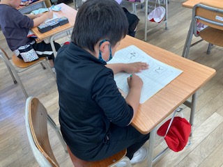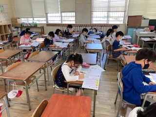 午後の預り児童の様子です。1年生は午前中に習ったひらがな「と」「そ」の学習プリントをしました。姿勢よく、丁寧に書いています。各学年の学習課題を学校と家庭で取り組んでいます。