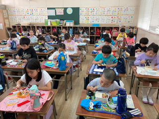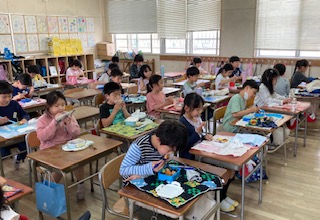 3年生は鶴見緑地公園の遠足が中止となり、教室で楽しくお弁当を食べました。子どもたちは満足した顔で食べていました。