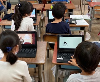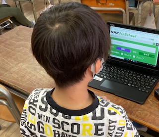 3年生がタブレット端末を使って、NHK for School の動画を見ました。動画を見ながら、音声の切り替え方を学びました。