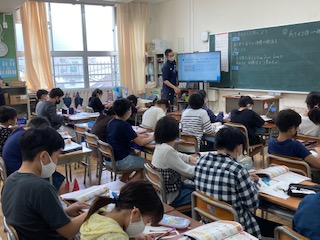 5年生が算数「変わり方を調べよう」で、直方体の高さと体積の関係を調べました。