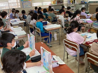 2年生が道徳「金のおの」を学習しました。主題は「正直な心」です。正直に言った時の気持ちを考え、うそをついたりごまかしたりしないで、素直にのびのびと生活する態度を育てることがねらいです。