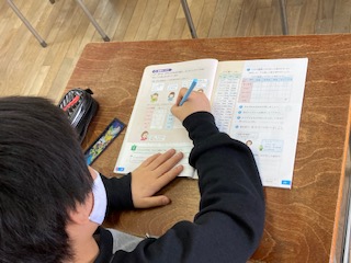 4年生が算数「整理のしかた」を学習しました。「正」の字を使って表に数を記入していきました。数え残しがないようにしました。