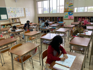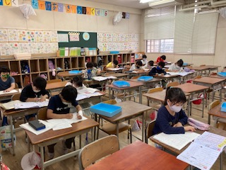 午後からの預りの児童は少ないですが、しっかりと課題をしています。水曜日は全学年5時間で終了ですので、14時30分に下校しました。