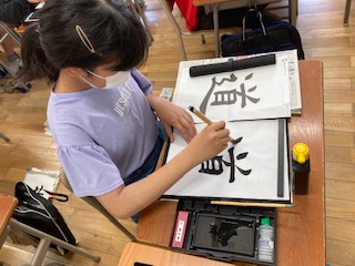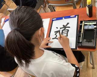 5年生が習字「組み立て方(にょう)」の学習で「道」を書きました。しんにょうの形やはらいが難しかったです。