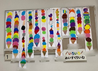 新型コロナウイルス感染拡大の影響により、保護者の皆様に来校していただき、学校生活の様子を見ていただく機会がありません。HPを通じてお伝えしたいと思います。上の写真は5年生の教室掲示です。学級目標と「ぽかぽか言葉」が掲示されています。下の写真は、1年生の学年掲示板の様子です。「いろいろあいすくりいむ」です。カラフルなアイスクリームで楽しくなります。