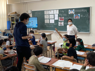 5年生が、英語専科担当とC-NETの先生と一緒に学習しました。好きなものを尋ねたり答えたりすることを学びました。久しぶりの英語学習でしたが、楽しく活動できました。