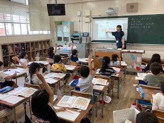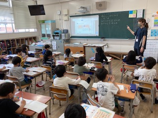1年生が算数「なんばんめ」の学習をしました。右から、左から、上から、下から何番目という数え方を学びました。ご家庭でも子どもたちに、〇〇から何番目と質問してあげてください。
