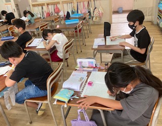 来週から通常授業になります。明日19日(水)までは、預かり児童の登校時間と他の児童の登校時間が違います。20(木)からは、全校児童が通常の登校時間となります。詳しくは、お手紙でお知らせします。本日の預かり児童は、241人で全校児童の約53%です。