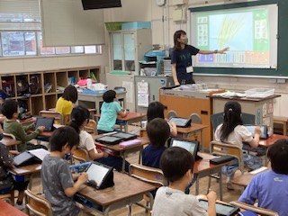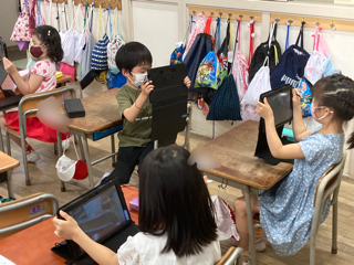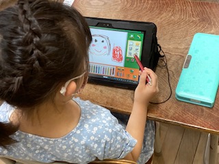 1年生がタブレット端末でお絵描きや写真の撮り方を学習しました。操作ができるたびに、歓声があがりました。とても楽しく学習ができました。