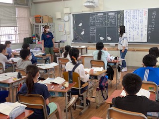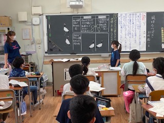 6年生が国語「風切るつばさ」の学習を始めました。6つの学習課題を設けて、文章を読み取っていきます。クルルとカララの気持ちを鶴の向きや2羽の距離間で表し、気持ちを考えました。同じ場面でも、考えが色々あり、互いの考えを話し合うことで深い学びになっています。