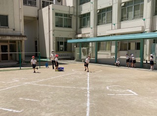 2年生が新体力テストのソフトボール投げをしました。昨年度は新体力テストを中止しましたので、初めてのテストです。ボールを投げて遊ぶ経験が少ない児童が多いですが、投げる方向に対して体を横向きに構えて、体をねじって投げていました。