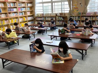 3年生が図書の時間に、本にふれあい楽しんでいます。本の世界に入り、夢中で読んでいる姿を見て、うれしくて思います。読書は心と頭の栄養です。