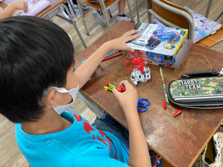 4年生は理科の学習で「電気のはたらき」をします。モーターカーを作って電気のはたらきを学習します。電気の力でプロペラがまわり、楽しそうです。