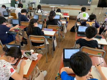6年生は、総合的な学習の時間にキャリア教育として、仕事について調べています。先日の阪急電鉄さんの出前授業でも、世の中にはさまざまな仕事があるということを教えていただきました。そのことをふまえて、自分の興味のある仕事について「どうやればなれるのか」「仕事の内容は」など、真剣に調べています。