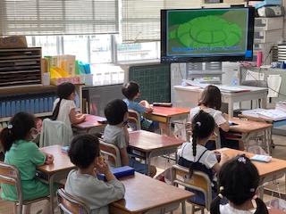 木曜日の朝10分間は、短時間学習による英語を行っています。聞いてわかるたくさんの英語語彙、文字を音声化できる力、内容を推測できる力、間違いを恐れず積極的にコミュニケーションを取ろうとする態度が、短時間学習で得られる学習効果です。毎日少しずつ、繰り返し何度も何度も行うことで効果があります。