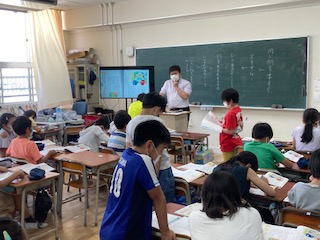 5年生が道徳「やさしいユウちゃん」を学習しました。この題材を通して、優しさについて考えます。人に親切にする時にはどんな考えや思いを持つとよいかを、みんなで話し合いました。