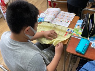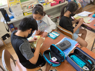 5年生が家庭科で「玉結び、玉どめ」をしました。練習布を使って初めて玉結びと玉どめをしました。できた児童は、困っている児童に優しく教えていました。玉どめが難しくて苦戦している児童が多かったです。