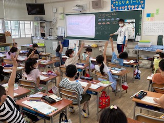 1年生が算数「どちらがなんだいおおい」を学習しました。「青い車が5台、赤い車が3台あります。どちらが何台多いですか」という問題で、5−3=2 答えは「2台」とする児童がいました。「どちらが」ときかれていますから、答えは「青い車が2台多い」と答えないといけません。立式と計算だけでなく、答え方も考えないといけません。ご家庭でも「どちらが〇〇多い」の問題を出してあげてほしいと思います。