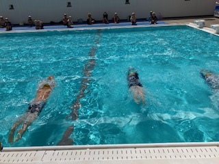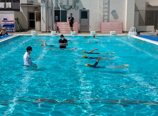 5年い組の児童が、水泳学習をしました。昨年度は水泳学習が中止となったため、今回の水泳学習をとても楽しみにしていました。不必要な会話や声がなく、久しぶりに楽しく泳ぐことができました。