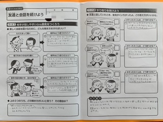 6年生がソーシャルスキルトレーニングに取り組んでいます。今回は「友だちと会話を続けよう」をしました。相手が話しやすい雰囲気を作るには、どうすればいいか、また意見が食い違った時、どう答えればいいかをロールプレイングをして学びました。