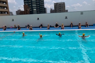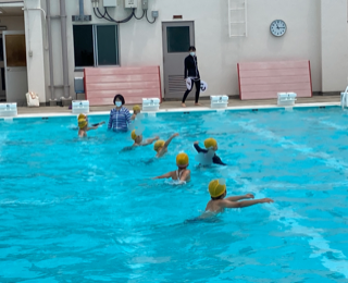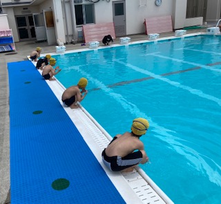 2年ろ組の児童が水泳学習をしました。1年生の時には、水泳学習が中止でしたので、小学生になって初めてのプールです。体操、ハンドサイン、入水の仕方などを学びました。水中でかけっこをしたり、胸まで水につかって息を吸ったり吐いたりしました。