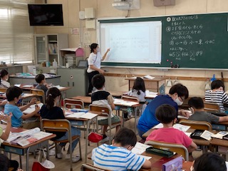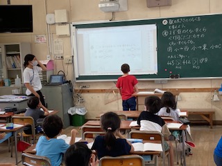 2年生が算数「数の大小」を学習しました。数の大小は、しるし「>、<」を使ってあらわすことを学びました。子どもたちは、自分の考えをみんなの前で発表しました。