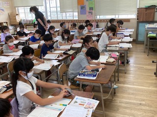 3年生が道徳「ふろしき」を学習しました。この単元の主題は、守りたい日本の文化です。普段の生活の中にある日本や地域の文化の良さに気づき、大切にしようという心情を育てることをねらいとしています。
