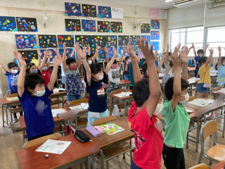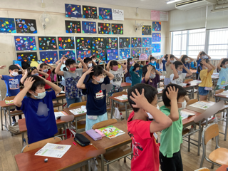 2年生が音楽「ドレミであそぼう」を学習しています。音の高さに気をつけながら、動作をして楽しく歌いました。