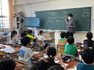 5年生が教科外国語(英語)の学習をしました。本時は「好きな教科をたずねよう」をしました。「What subject s do you like?」とたずねて、「I like ○and○」と2つ好きな教科を答えます。ペアで会話をしました。