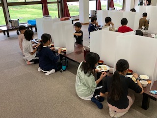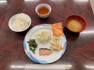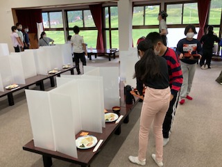 食事係がご飯とみそ汁ので配膳をしました。美味しくいただきました。