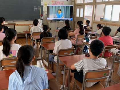 オンラインで2学期の始業式をしました。教頭先生から、2学期も引き続き、「手洗い、消毒、マスクをする、うがいをする、ソーシャルディスタンス」を心がけて感染予防対策をしましょうとお話がありました。