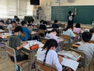 6年生は、今日から本格的に授業がはじまりました。担任が入れ替わり、交換授業をしている様子です。