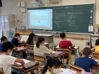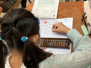4年生が算数「そろばん」の学習をしています。そろばんで小数の足し算や引き算をしました。