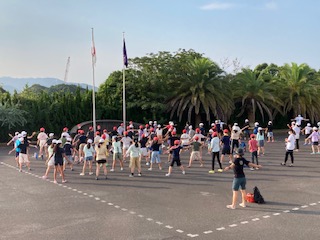 少し眠い表情の子どもたちも、ラジオ体操をして体も心もリフレッシュしました。サプライズで、本日9月1日が誕生日の先生をみんなでお祝いしました。